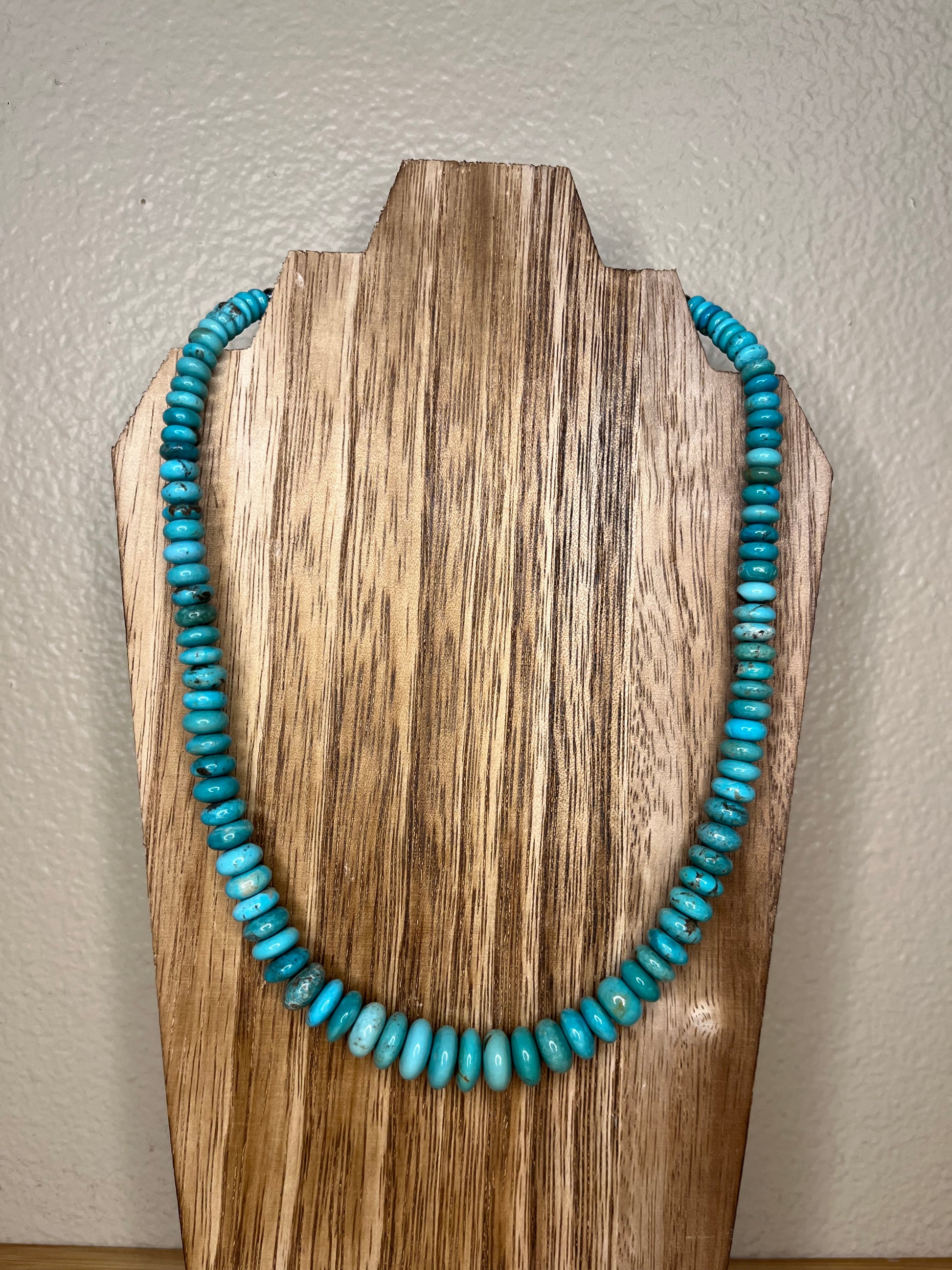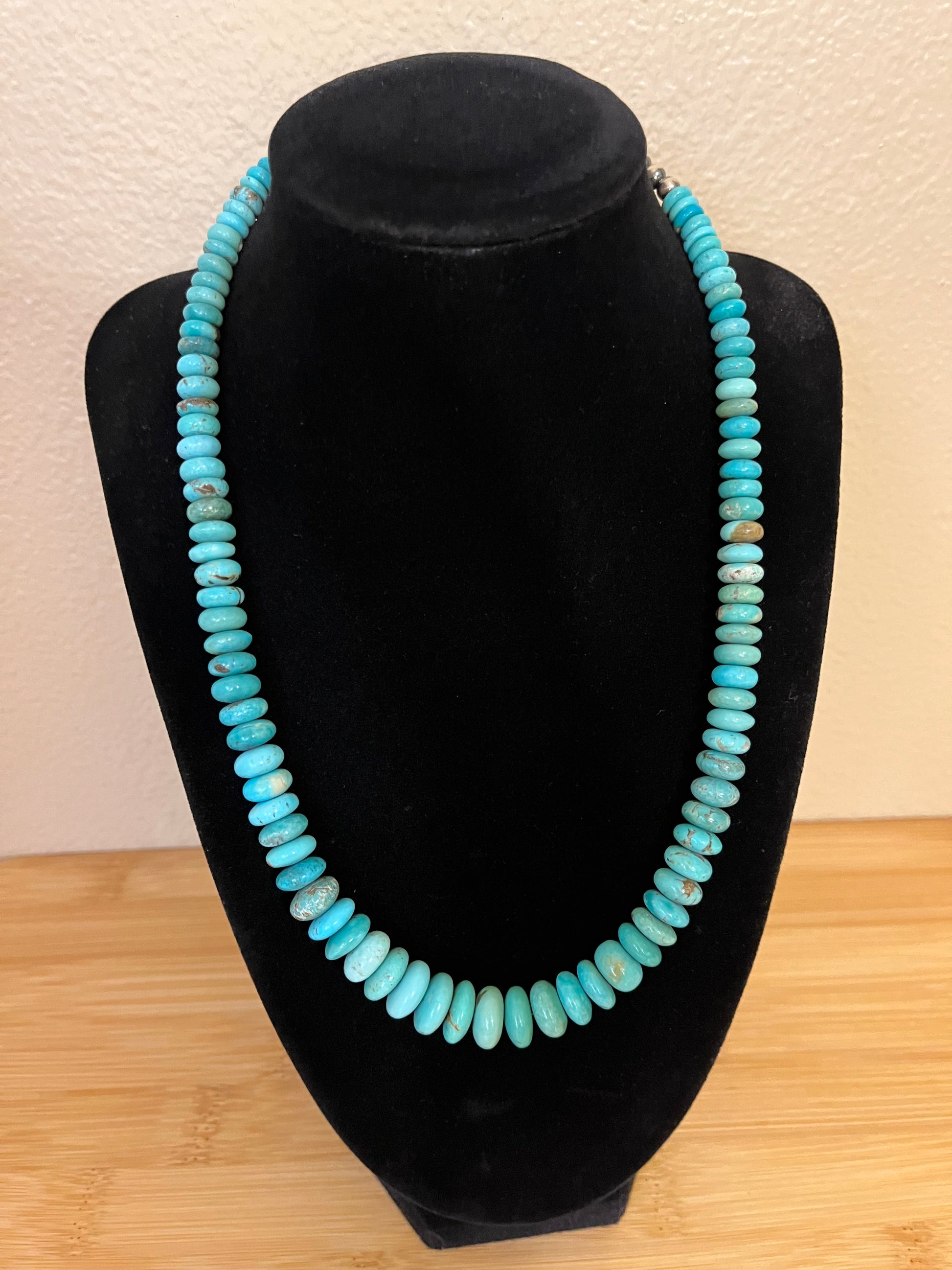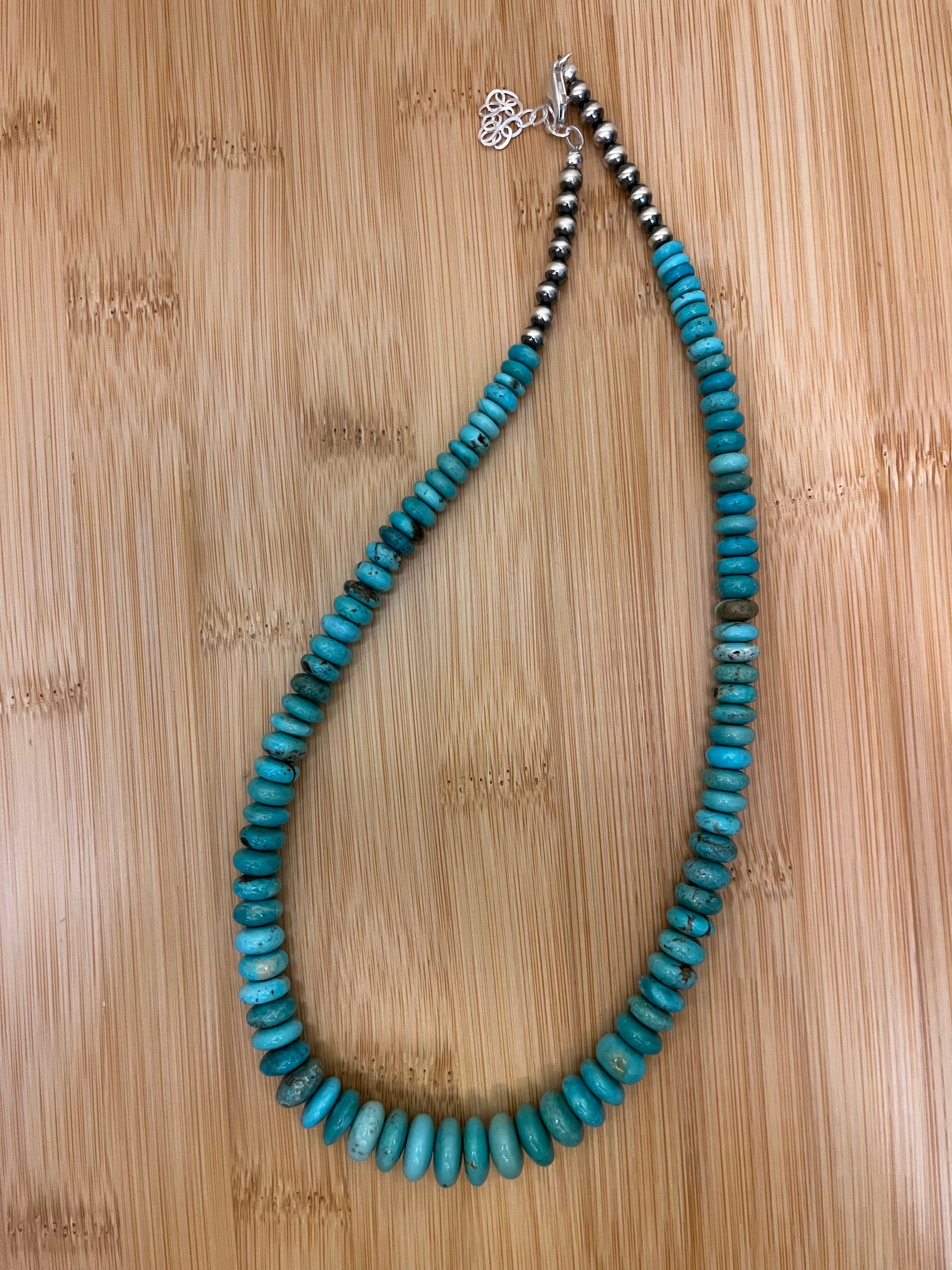 TURQUOISE ALERT!! This necklace is so pretty!! Made with 5mm Sterling Silver Navajo Pearls & 6-12mm roundel turquoise beads. 20” + 2” extender.