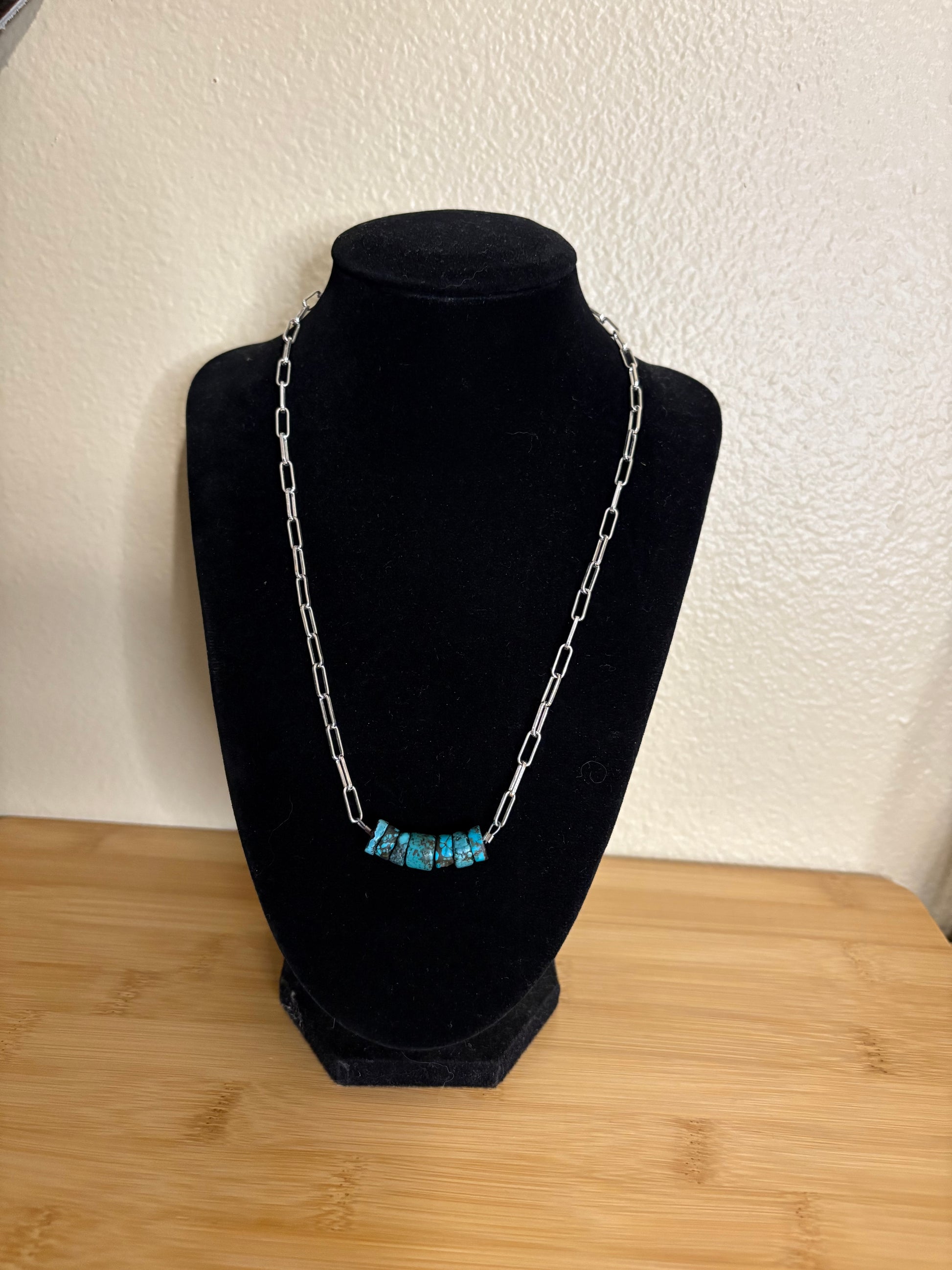 This thick turquoise bar is perfect for any day and occasion! This stunner is made of 8mm Turquoise beads & Paperclip Sterling Silver chain!