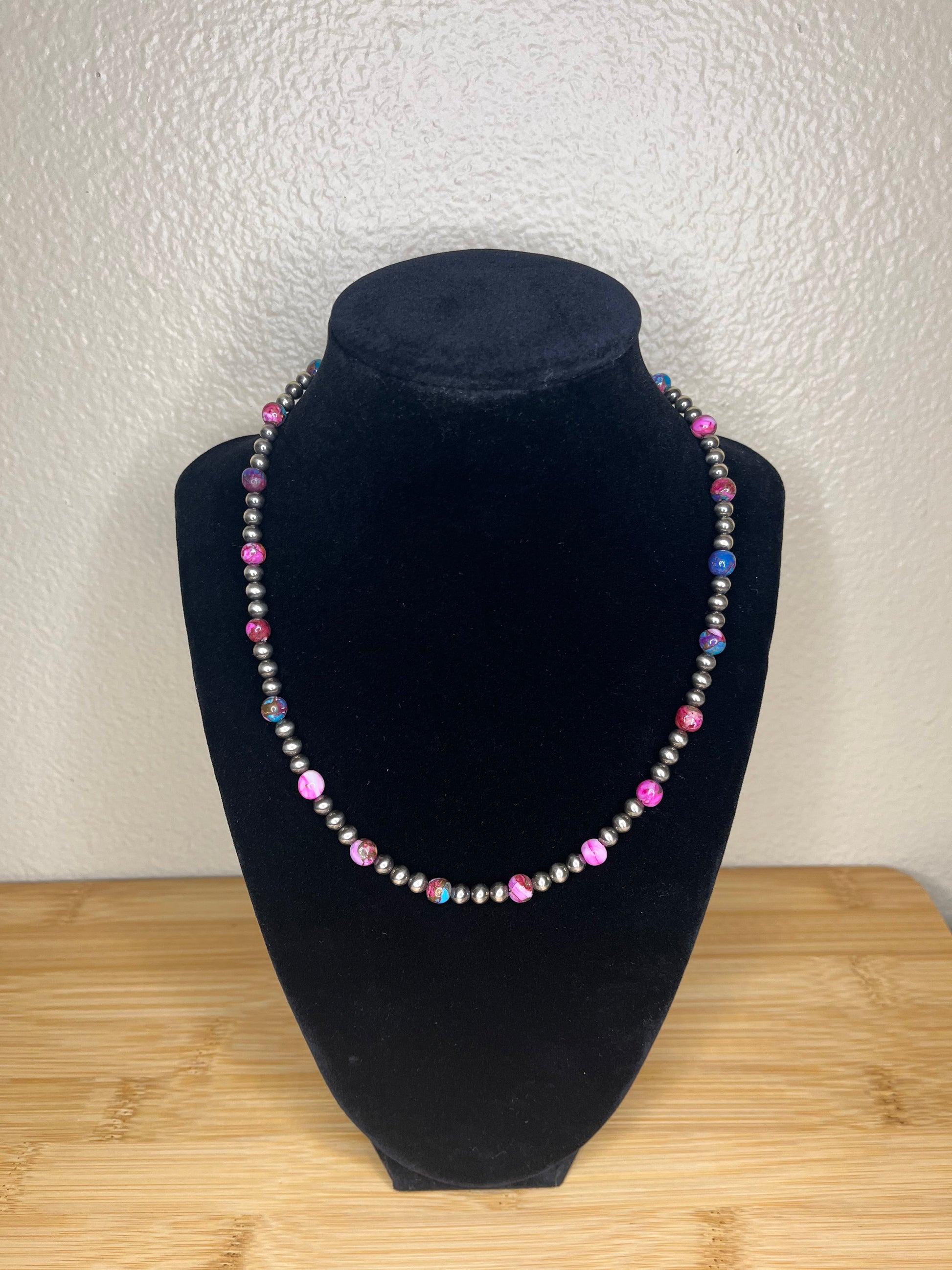 Look at the color! This necklace is perfect! Made with 5mm Sterling Silver Navajo Pearls & 6mm Dahlia. 18” + 2” extender.