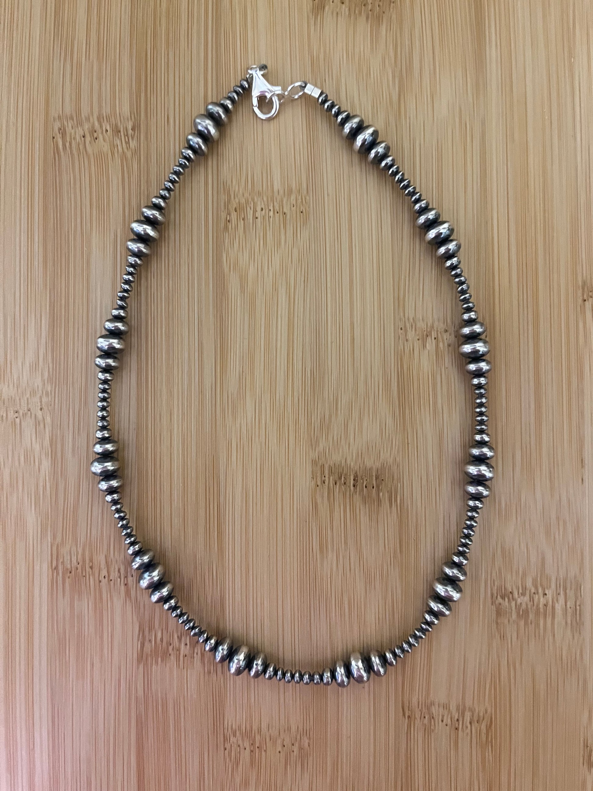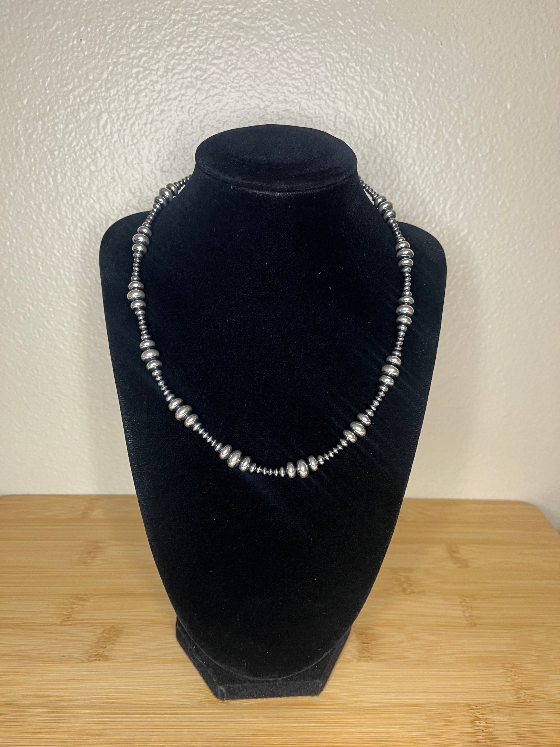 Look how fun this piece is!! This is a Navajo made saucer necklace with 3-8mm Sterling Silver Navajo Pearls. Comes in a 16” or 18”. NATIVE MADE.
