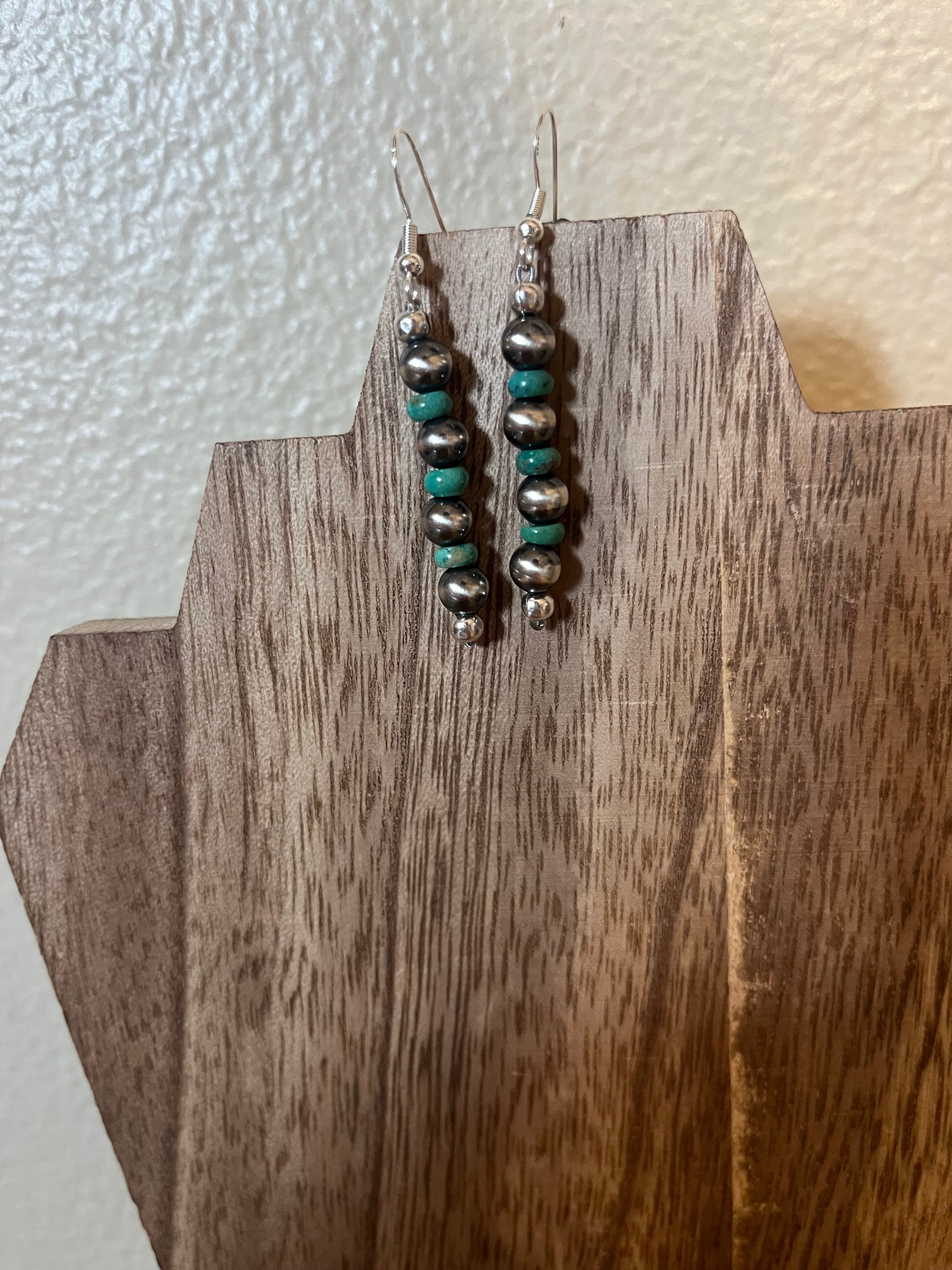 A dangly earring mixed with some color! These earrings are made of 6mm Sterling Silver Navajo Pearls & 6mm Turquoise!